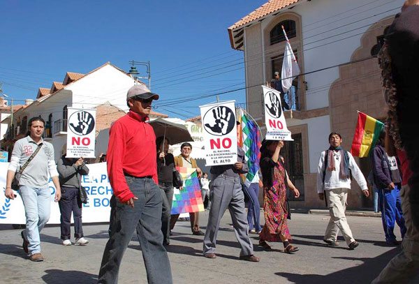 A su turno, el dirigente de la Confederación de Pueblos Indígenas de Bolivia (Cidob), Lázaro Tacoó aseguró que la Ley 045, sólo sirve “de nombre”, ya que los gobernantes “son los principales discriminadores y racistas de los pueblos indígenas”.