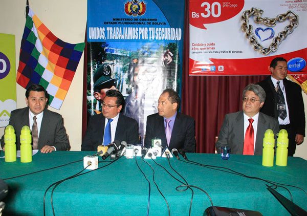 Las compañías de telefonía móvil y fijas afiliadas a la cámara de Telecomunicaciones de Bolivia, incorporarán en las tarjetas de recarga de crédito telefónico mensajes alusivos a los objetivos de los planes y leyes de seguridad ciudadana como “Dile si a la vida, no a la droga”, “Cuídate y cuida a los que amas, campaña contra la trata y tráfico de personas”, “La seguridad es tarea de todos, unámonos para prevenir y denunciar el delito”, “El linchamiento es un delito, denuncia no seas cómplice”, los cuatro mensajes serán utilizados en los diferentes cortes de las tarjetas prepago que tiene cada operador por las empresas de Entel, Telecel y Nuevatel.