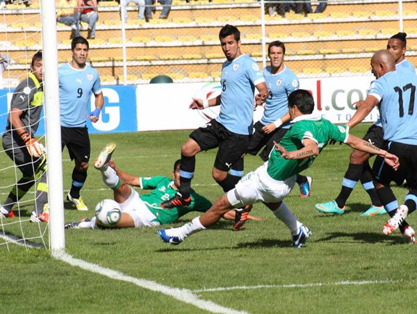 La Selección jugó un magnífico partido, ahogó a Uruguay desde el primer minuto y goleó al equipo celeste por 4-1 con tres goles de Carlos Saucedo y el restante de Gualberto Mojica; éste junto a Chumacero, Galarza y Cardozo fueron lo mejor del equipo nacional que cambió de actitud y se hizo respetar en casa. En la foto el primer gol boliviano.