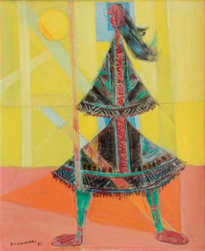 Siguiendo con la lista, Colombia está representada por Enrique Grau, con una obra de la etapa influida por el abstracto que luego dejó para volver a la figuración. Además, está presente Alejandro Obregón, con un goauche, que es un tipo de pintura consistente en pigmento, de gran factura que resume la gestualidad que le hiciera generar obras de gran calidad cromática.
