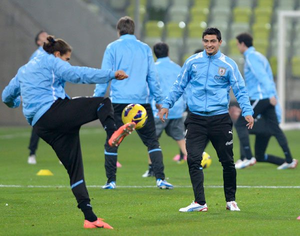 Uruguay formaría con: Muslera; Aguirregaray, Lugano, Godín, Martín Cáceres; Álvaro González, Egidio Arévalo Ríos, Gargano, Álvaro Pereira o Cristian Rodríguez; Cavani y Luis Suárez.