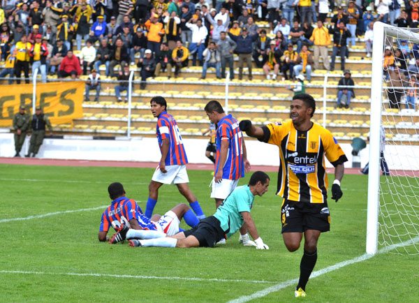 Llegó el minuto 61, cuando Bejarano mandó un pase cruzado a Soliz, éste envía el centro y cuando Escobar busca el cabezazo Enrique Bustillos lo agarra y el juez cobra penal. Dos minutos después es el mismo capitán atigrado quien anota el 3 a 0 (63’).