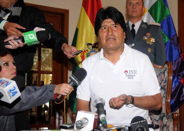 El mandatario Evo Morales fue censado solo en la Residencia Presidencial de San Jorge. Desatacó que este es el primer Censo del Estado plurinacional para definir políticas para beneficio de los gobiernos departamentales, municipales, regionales e indígenas campesinos.