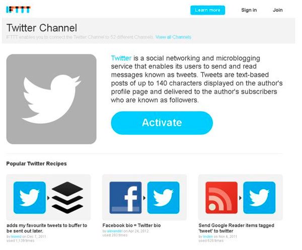 Una de las soluciones más eficaces es IFTTT (If This Then Than), un servicio de reciente creación, pensado para compartir fácilmente información en varias plataformas. Por ejemplo, ofrece “recetas” para archivar los mensajes de Twitter en Dropbox o en Evernote. La pena es que, con la próxima entrada en vigor de las nuevas normas de Twitter para desarrolladores, IFTTT ya no va a estar disponible para los usuarios de esa red social. El apartado 4.A de esas normas, publicadas el pasado 5 de septiembre, prohíben cualquier aplicación que “exporte contenidos de Twitter a un servicio de almacenamiento de datos o a otros basados en la nube”.