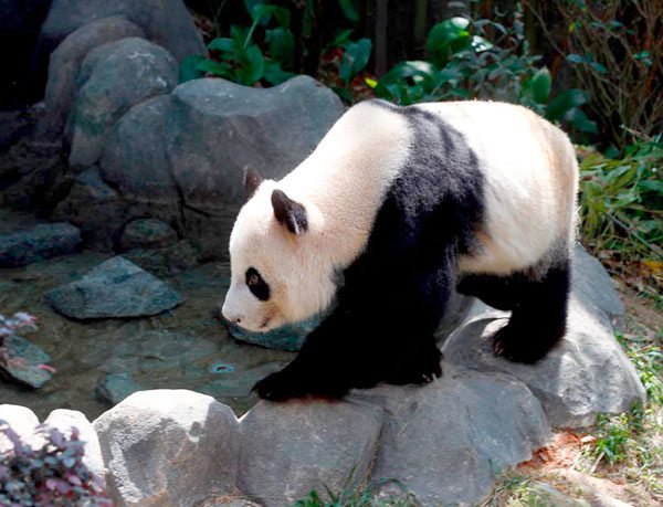 El panda Kai Kai camina durante la inauguración del nuevo Bosque de Pandas en el zoológico de Singapur. El bosque mide unos 1.500 metros cuadrados, diseñado para imitar el hábitat natural de los pandas. Los pocos ejemplares de esta especie que existen en el mundo son cuidados con mucho empeño por los gobiernos que tiene osos pandas en zoológicos y reservas especiales.
