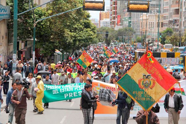 Las ciudades de Santa Cruz de la Sierra, La Paz, Oruro y Tarija fueron los centros de intensa movilización; miles de gremiales protagonizaron marchas de protestas paralizando las principales calles y avenidas.