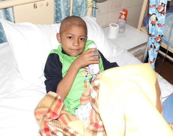 En el salón de Oncología del Hospital del Niño se encuentra Airdón, un niño lleno de alegría que nos recibe con una sonrisa en el rostro, “él tiene nueve años y está internado acá desde hace tres meses, porque lo diagnosticaron cáncer en la sangre”, relata su madre.