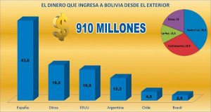 La misma fuente señala que el 44% de las remesas provienen de España, donde se estima que viven alrededor de 150.000 bolivianos con permiso de residencia.