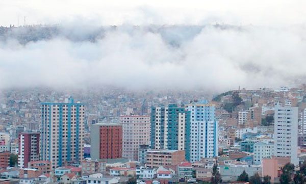 A mediodía de ayer, una intensa neblina que por momentos alarmó a la población, antecedió a una lluvia tenue que tuvo una prolongación de 15 minutos y que ocasionó 20 emergencias en La Paz.