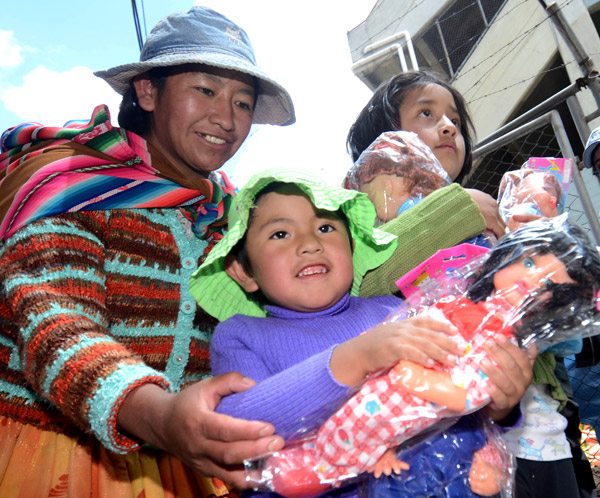 Muchas instituciones también realizaron campañas para regalar juguetes a los niños del norte Potosí, que junto a sus madres invadien las calles paceñas en busca de dinero o alimentos.
