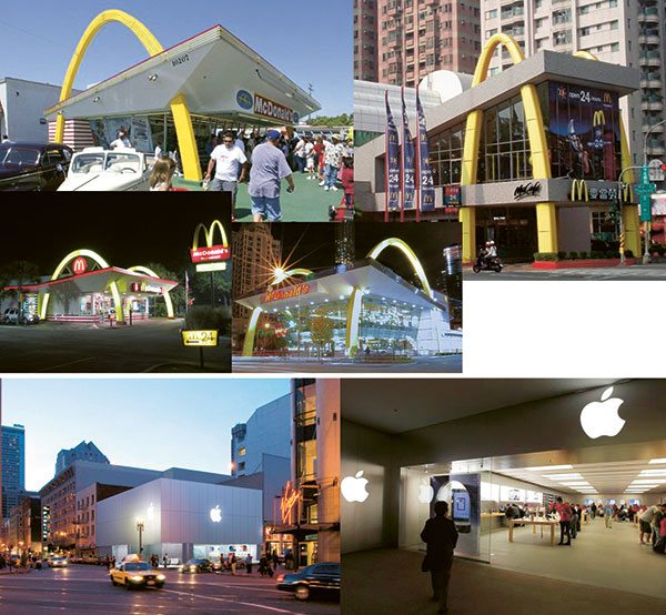 Ya parece enteramente posible que lo que alguna vez fue considerado tan llamativo y original de cada local Apple con sus brillantes siluetas blancas, metal pulido y ángulos afilados –un estilo tan característico que Apple lo hizo su marca registrada- podría parecerle a los clientes como estéril e imponente. Hay un par de lecciones para Apple en la historia de la arquitectura de McDonald’s: