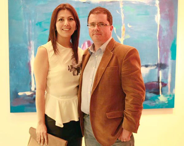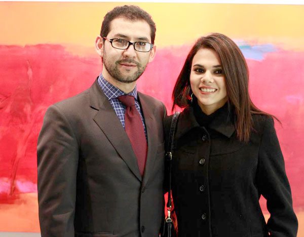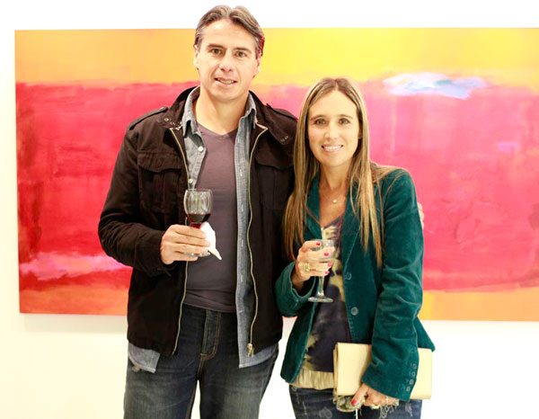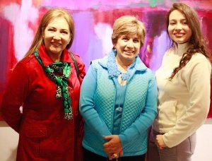 La pintora paceña compartió con numeroso público la noche inaugural, durante el vino de honor ofrecido por Daniela Mérida y José Miguel Romero, quienes ponderaron el talento de la expositora.