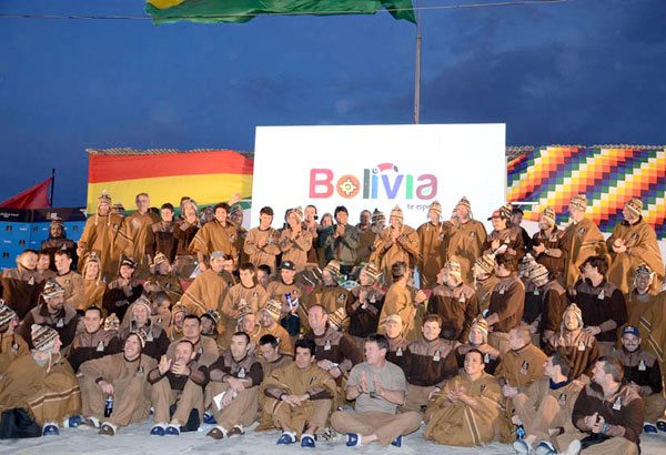 BIENVENIDA: En Uyuni se ubicó la rampla de bienvenida. Alrededor se apostó la gente entusiasmada que llegó de los cuatro puntos cardinales del país. El evento unificó la gran diversidad del país, la cual portaba la Bandera boliviana, además de otros símbolos de otros países. El aficionado boliviano vivió y recibió como ningún país pudo recibir a la carrera más complicada del Mundo.