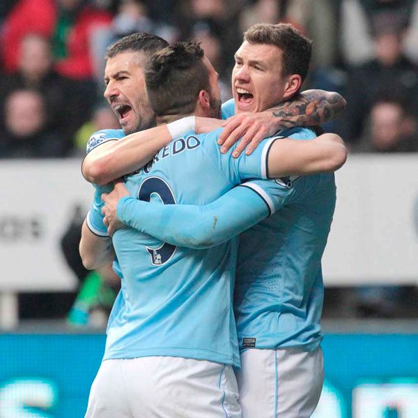 El bosnio abrió la cuenta a los ocho minutos, cuando culminó un centro del serbio Aleksandar Kolarov. El cuadro del chileno Manuel Pellegrini fue superior a su rival, que apenas inquietó la meta de Joe Hart.