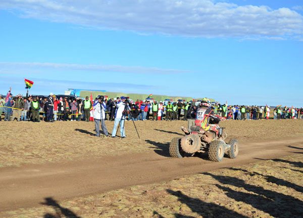 En cuadriciclos el boliviano Wálter Nosiglia mantuvo posiciones ayer volvió a ocupar el séptimo lugar con un tiempo de 7h00´02” y llegó a 41´15” del ganador de la etapa el chileno Ignacio Casale quien empleo 6h18´47” y sigue liderando en la clasificación general con un tiempo de 39h39´49”. Nosiglia actualmente se posiciona en la casilla 12 a 13h43´55” del chileno.