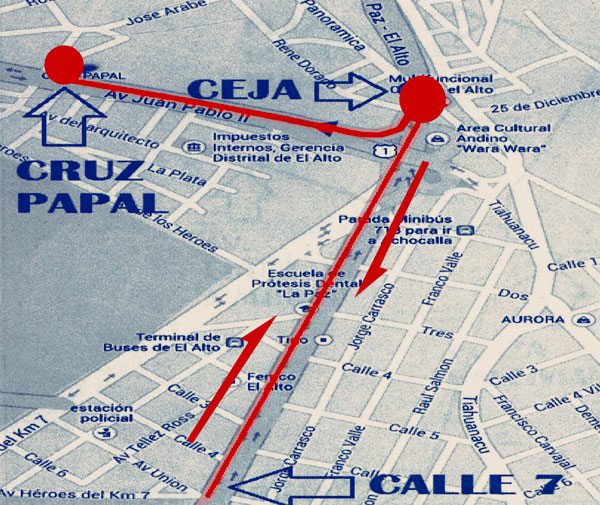 De acuerdo a los estudios realizados por la Dirección de Transporte de la Gobernación de La Paz, dirigida por Julio Salas, las tres rutas de acceso que concentran más del 90% del parque automotor que presta servicio de transporte intermunicipal son las avenidas Naciones Unidas, Ballivián y la Autopista.