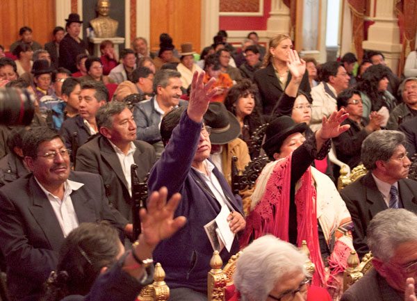 La Asamblea de la Paceñidad que se reunió ayer en el Palacio Consistorial determinó cuatro puntos, de los cuales se otorgó respaldo al nuevo transporte municipal “La Paz Bus”, además se exigió al Gobierno Municipal la suspensión y licitación de rutas a aquellos sindicatos que no cumplan con un buen servicio en el sistema de transporte público.