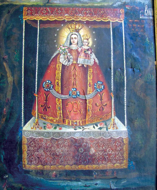 La primera copia fiel de la imagen de Nuestra Señora de Copacabana, modelada por las mismas manos del escultor inca Francisco Tito Yupanqui, aunque encargada inicialmente poco antes de la entronización a orillas del Titicaca por el difunto obispo de Tucumán, por esas cosas raras del destino fue a parar a mil kilómetros de distancia, a una olvidada comarca peruana, donde a finales del siglo dieciséis en señal de gratitud por un milagro el indígena Sebastián Quimicho la había conducido en hombros, caminando desde Copacabana hasta esos confines, edificándole en 1593 el primer santuario de tierras americanas, inclusive anterior al de la advocación original.