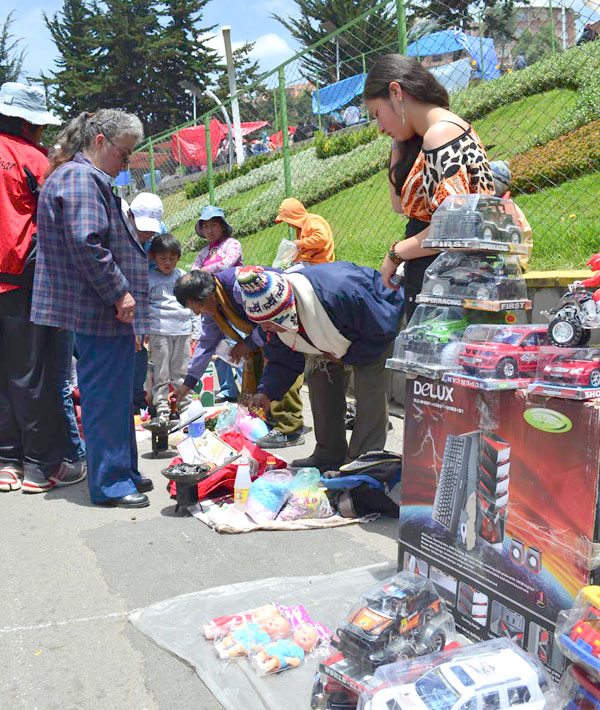 Antonio Zarzuri, Ekeko, representante del suyo Ingavi: “La verdad es que tenemos que pensar en cosas tradicionales, como los juguetes en maderita, rescatar de las llantas viejas, no hay que fomentar eso del plástico que contamina”.