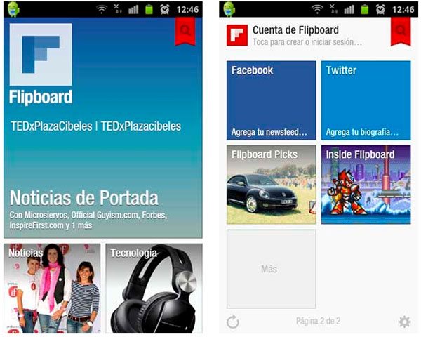 Les presentamos Flipboard un clásico entre las aplicaciones. Esta es una herramienta del tipo agregador de contenidos. Es decir, una aplicación donde encontrar las noticias, artículos y contenidos de interés para el usuario. Todo ello a través de una interfaz o aspecto muy cuidado para que resulte práctico y cómodo leer desde la pantalla del dispositivo, ya se trata de artículos largos, publicaciones de redes sociales o incluso vídeos. Flipboard permite agregar toda clase de contenidos, ya sean fuentes como blogs y páginas web favoritas, como redes sociales. Así, con sólo hacer flip y deslizar el dedo por la pantalla es posible ingresar de todo de forma cómoda y visualmente muy atractiva. Además, durante este último año los responsables de la aplicación han introducido nuevas funciones como crear revistas propias con los contenidos que el usuario desee y hacerlas públicas para otras personas. La aplicación es completamente gratis y está disponible en Google Play, App Store y Windows Store.