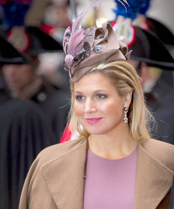 Guillermo Alejandro y Máxima de Holanda se trasladaron a Italia, donde realizaron una de las visitas oficiales encuadradas en la gira de presentación, que desde la investidura del Rey el pasado abril les ha llevado por multitud de países como Alemania, España o el Reino Unido. La reina Máxima, que conquistó a propios y extraños, lució para la ocasión un vestido rosa palo con pléplum, un abrigo sobre los hombros en color chocolate a tono con los complementos, bolso de mano, guantes de piel y zapatos de serpiente. La soberana holandesa, reina en el arte de llevar el sombrero, coronó su espectacular puesta con un tocado y fabuloso adorno de pluma.