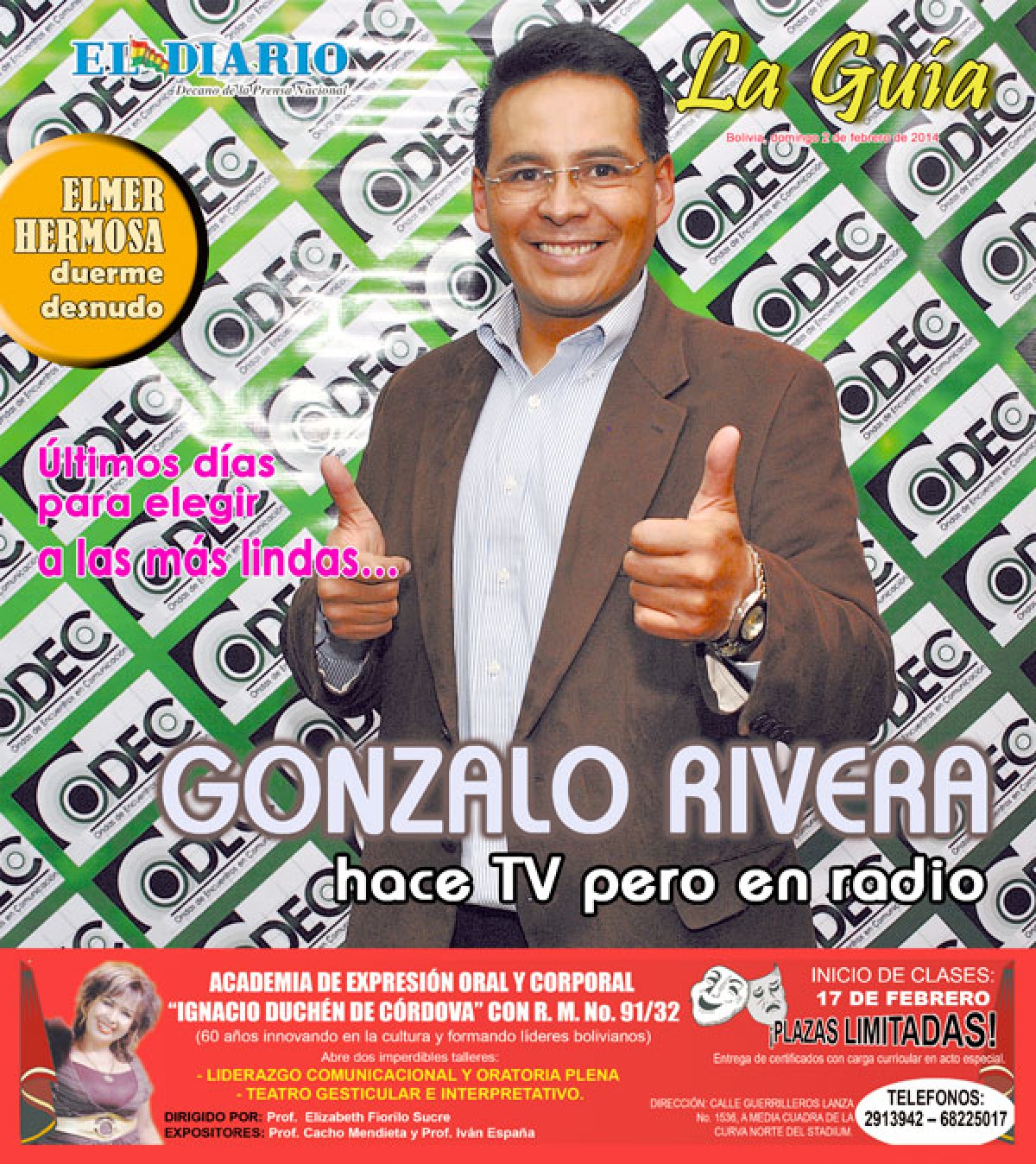 Como un preámbulo a la apertura de su curso regular correspondiente a la presente gestión, la Academia de Expresión Oral y Corporal “Ignacio Duchén de Córdova” dictará dos atractivos talleres,...