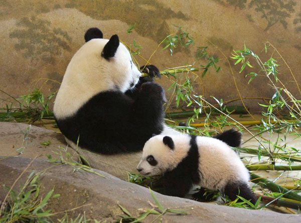 Madrid.- Xing Bao, el pequeño oso panda del Zoológico Aquarium de Madrid que ya ha cumplido cinco meses, dio su primer paseo en solitario supervisado por su madre Hua zui Ba y sus cuidadores. El principal alimento del panda es el bambú (en torno al 99% de su dieta), aunque también come frutos, pequeños mamíferos, peces, e insectos. Es un buen trepador, aunque rara vez se le ve en los árboles. Se adapta a la cautividad y gracias a su pelaje soporta fácilmente las condiciones invernales de su hábitat.