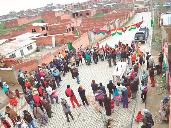 Las flamantes vías Enrique Gilberto y Ángel Estrada, ubicadas casi en los límites del lado norte de El Alto, fueron adornadas con aguayos y mesas por los vecinos, quienes emocionados y agradecidos recibieron a las autoridades con guirnaldas en mano. Luego de la ch´alla respectiva, el acto central se desarrolló en la avenida Estrada en presencia de todos los asistentes.