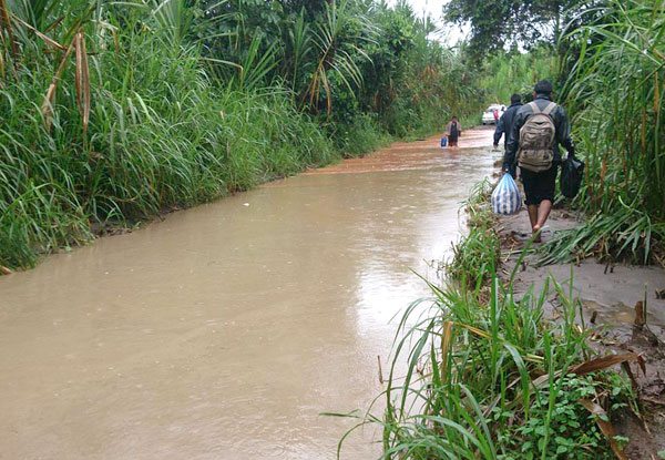 “En dos días el agua ha subido bastante, ha sido impresionante, este sábado subió 25 centímetros y el domingo unos 20 centímetros, ahora ha parado un poco de subir, pero si continúa subiendo estaremos en grave peligro de inundarnos, no solamente nosotros sino que correría peligro la ciudad de Trinidad”, dijo Hurtado.
