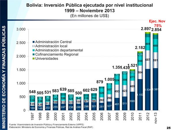 Aseguró que la Inversión Extranjera Directa (IED) proyectada para el 2013, que fue de $us 1.450 millones, será superada y que el crecimiento continuará este año.