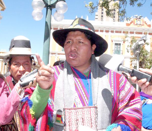 Agregó que de ninguna manera los pueblos indígenas serán desbaratados por Quispe, ya que todas las autoridades originarias van a pelear “hasta las últimas consecuencias”. Señaló que a pesar de que dijo que la decisión fue personal, no le da derecho a actuar de esa manera, ya que no hizo respetar los derechos colectivos de los pueblos indígenas originarios.