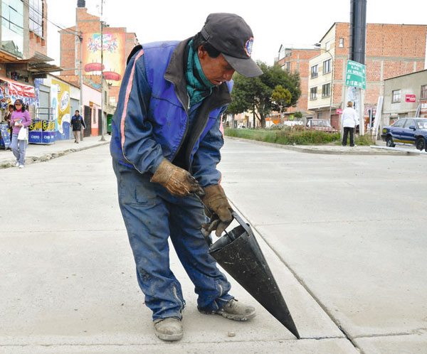 El Gobierno Autónomo Municipal de El Alto inició el resellado de juntas de la avenida Satélite, que va desde la parada del Micro “Ch” hasta llegar a la intersección de la avenida Cívica, Distrito 1.