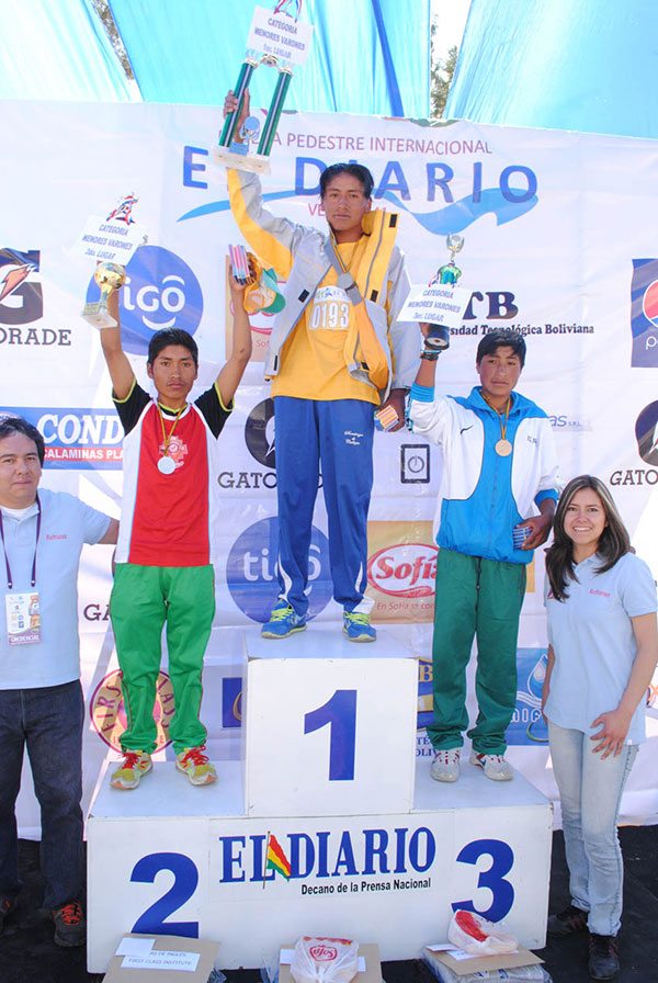 Juan Carlos Sullcani para la competencia empleó un tiempo de 47 minutos 53 segundos, mientras que el segundo lugar le pertenece a Samuel Ramos y tercero en ingresar fue Edmar Huanca.
