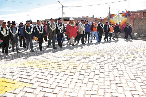 El alcalde de El Alto, Édgar Patana, entregó el fin de semana la sede social de la urbanización 23 de Marzo del Distrito 4 y cuatro calles enlosetadas del Distrito 12.