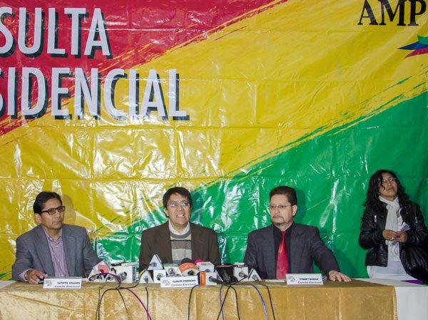 Por su parte, Rafael Quispe, exdirigente del Consejo Nacional de Ayllus y Marcas del Qullasuyu (Conamaq), afirmó que está de acuerdo con los resultados de la encuesta y convocó a los sectores contrarios al Gobierno designar un solo candidato en representación de la oposición.