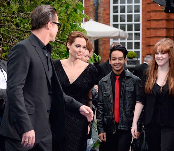 Angelina Jolie, espectacular con un vestido negro de Atelier Versace y unos zapatos de Christian Louboutin, llegó de la mano de su marido, Brad Pitt, con un look total black, y acompañados de un sonriente Maddox, de 12 años, también de negro pero con el detalle de la corbata roja. El hijo mayor de Pitt y Jolie se mostró encantado de poder acompañar a sus padres en la presentación de Maléfica, la última película de su mamá, que da vida a la malvada bruja del cuento de La bella durmiente y de su hermana pequeña, Vivienne, que interpreta un breve papel de la princesa Aurora en su infancia.