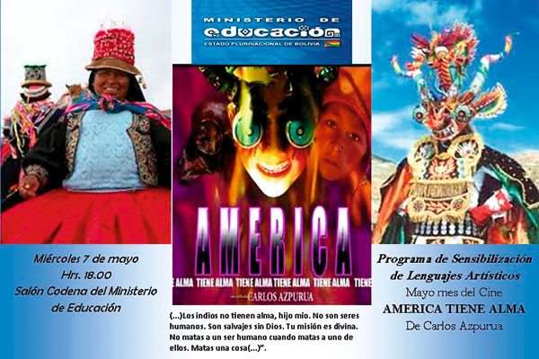 El Ministerio de Educación, en el marco de la realización del Programa de Sensibilización de Lenguajes Artísticos, ha programado para el mes de mayo dedicar al Cine Boliviano, mediante proyecciones de películas, conversatorios que permitirán aportar a la construcción de una formación artística boliviana, en este caso en el ámbito del cine.
