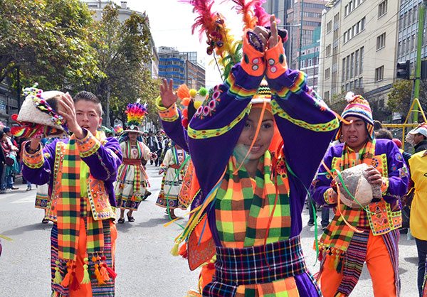 Más de 4 mil estudiantes de primero de primaria a sexto de secundaría del colegio Don Bosco protagonizaron, ayer, una entrada folklórica en honor a María Auxiliadora, expresión cultural que en La Paz es más antigua que la misma Entrada Universitaria, manifestó uno de los miembros del comité organizador de la Peregrinación Folklórica, profesor Uber Alarcón.