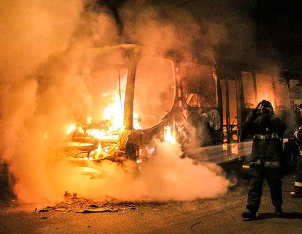 En la Avenida Yervant Kissajikian, en la región suroriental de la capital paulista, un autobús fue quemado, mientras que en el barrio Jardim Presidente Dutra, en el vecino municipio de Guarulhos, también en la región metropolitana, otro más fue atacado con fuego.