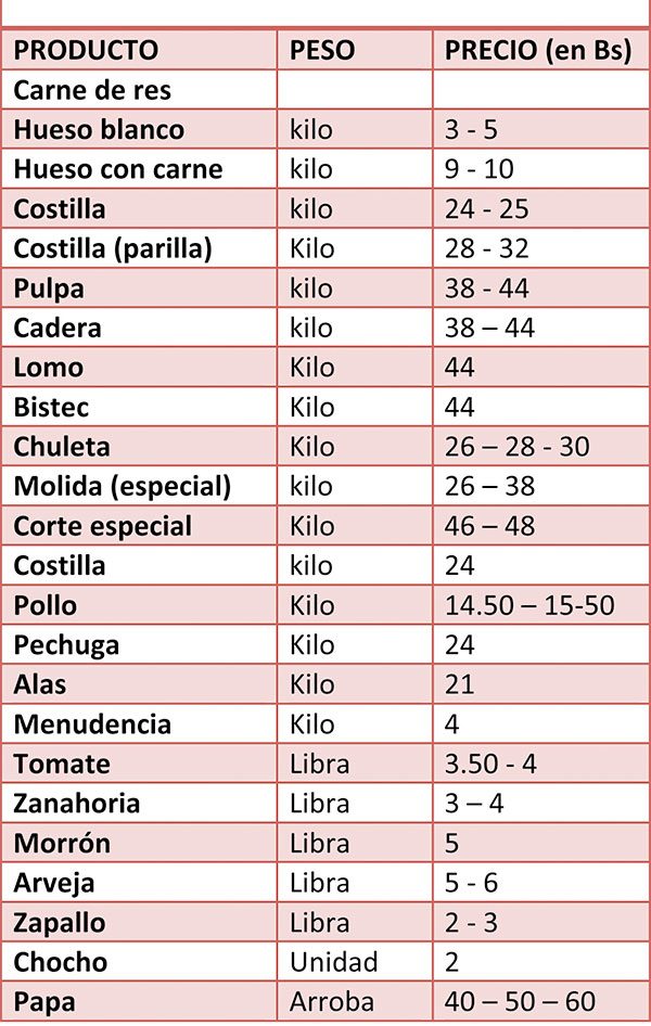 Sin embargo, hay algunos días en que los distribuidores o mayoristas aumentan hasta Bs 2 y 3 el kilo gancho, debido a la demanda, aseguró Aguilera.