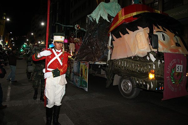 Con la consigna de “La Paz somos todos”, instituciones cívicas, privadas y públicas rindieron anoche un homenaje a los 205 años de la gesta libertaria del 16 de Julio de 1809 con un desfile de más de 50 carros alegóricos.