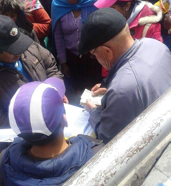 Una foto compartida por el candidato a primer senador por La Paz, Andrés Ortega, del Partido Demócrata Cristiano (PDC), muestra a un civil repartiendo un fajo con billetes de 10 bolivianos a gente aglomerada que podría pertenecer a las organizaciones corporativas que respaldan la reelección del binomio oficialista. La foto fue tomada en inmediaciones de la Plaza San Francisco.