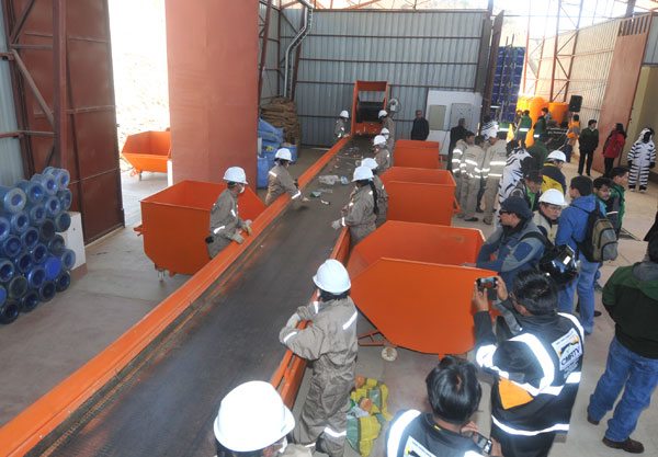 “Ponemos en funcionamiento la separación de los residuos sólidos y la fabricación del material denominado plastimadera –fabricado de bolsas plásticas y botellas pet– lo que nos permite demostrarle al ciudadano paceño el resultado del proceso del reciclaje y su destino final que se logra con nuestro propio trabajo y esfuerzo”, dijo el alcalde Luis Revilla, quien junto al embajador de Suiza, Peter Bischof, inauguró ambas plantas.