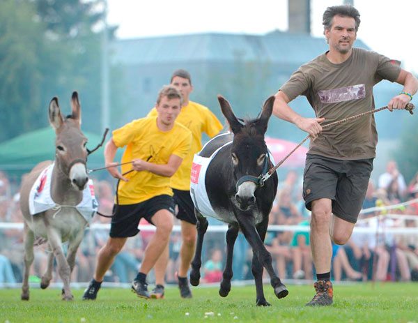 Hersbruck, Alemania, es el lugar que acoge a este particular e inusual carrera de burros, tal como se muestra en la fotografía. Fue la trigésimo cuarta versión de esta competición, que ha despertado la expectativa de los lugareños, que año a año se dan cita para esta competición. Los burros también reciben una preparación, a fin de llegar en las mejores condiciones a este evento, que ya tiene muchos seguidores en Alemania y en algunos países aledaños, por lo que año a año crece más.