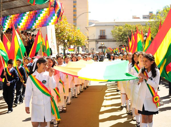 Al menos 76 unidades educativas entre fiscales, privadas e invitadas participaron del desfile escolar que se desarrolló la mañana de ayer en la plaza Murillo, el evento fue organizado por la Gobernación de La Paz.