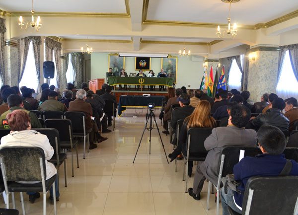 El encuentro se realizó ayer en el salón de honor de la Academia Nacional de Policías (ANAPOL) donde estuvo el viceministro de Seguridad Ciudadana, general Alberto Aracena; el director de Seguridad Ciudadana de la Alcaldía, José Ramallo; el teniente coronel Jorge Vaca de la Gobernación; el presidente de la Fejuve Sur Facundo Hurtado; Sara Gonzales de la Unidad de Seguridad Ciudadana del Viceministerio y el Rector de la UMSA, Waldo Albarracín.