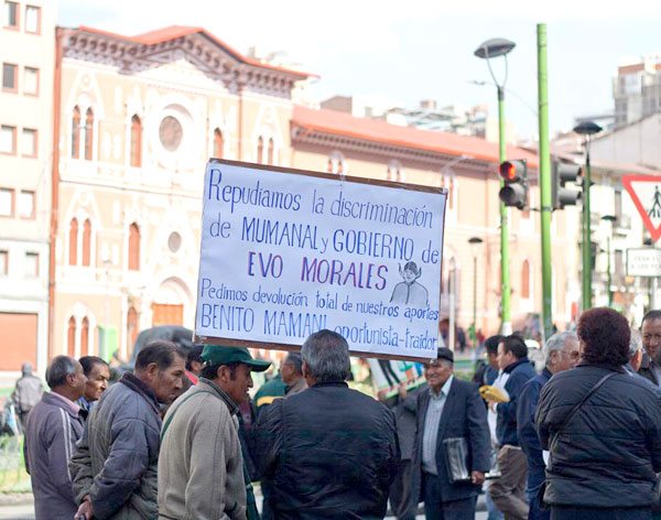 Los jubilados del país reanudaron sus movilizaciones y dejaron de lado el cuarto intermedio en sus negociaciones con el Ejecutivo luego de que el ministro de Economía, Luis Arce, desestimará en varias oportunidades la consideración de las demandas de este sector. El secretario ejecutivo de la Central Obrera Boliviana, Juan Carlos Trujillo, brindó el apoyo de la máxima institución gremial del país a la demanda del sector.