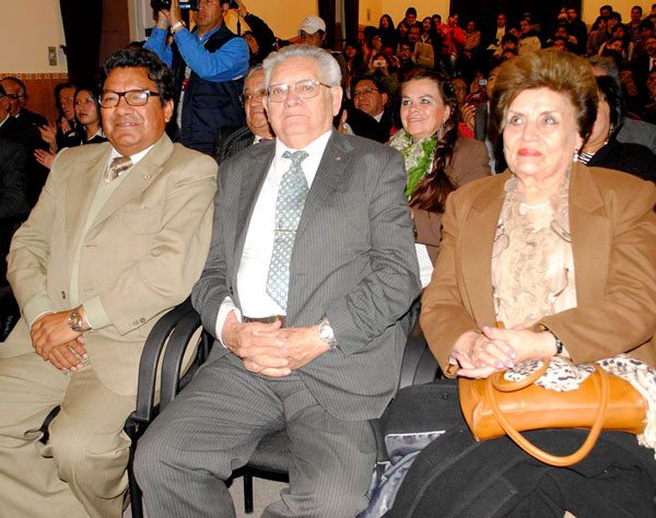 Los reconocimientos fueron otorgados junto a la ANCB a los mejores alumnos de cada carrera y a los profesionales en Química, Pedro Crespo Alvizuri, viceministro de Ciencia y Tecnología, y Fedor Pérez Alcalá, por su contribución al desarrollo del país.