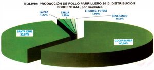 El 2013 la producción de Cochabamba fue 110 millones de pollos al año, es decir más de 2 millones por semana. Cochabamba produce el 60 por ciento de la oferta nacional. “Este año sobrepasaremos 116 millones de unidades y para el 2015 la proyección es llegar a 120 millones”, sostuvo Soria.