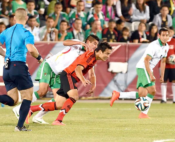 El plantel nacional, más allá de que demostró algo más que en el anterior partido ante Ecuador, cumplió un trabajo bastante sacrificado. Sus jugadores estuvieron la premisa de marcar en todos los sectores de la cancha, pero Miguel Layún, una “pesadilla” para la defensa nacional, se dio modos para anotar el único gol del partido, a los 18 minutos de la fracción inicial. Tras una serie de rebotes, el golero Vaca interceptó un potente remate de Aquino, pero el balón volvió a los pies de Layún, que de volea anidó el balón al fondo de las redes.